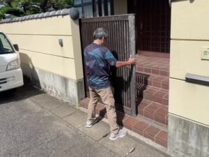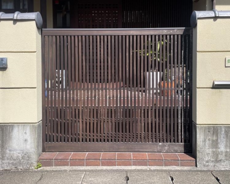 17年程前にフォームさせていただいたお家の門扉。 動きが悪いとのご連絡をいただき調整へ。