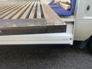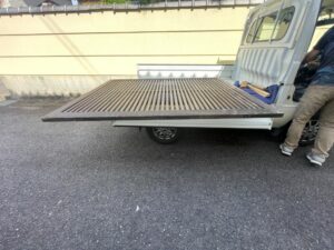 重くて大きいため建具屋さんと私の二人で外しトラックの荷台へ移動します。